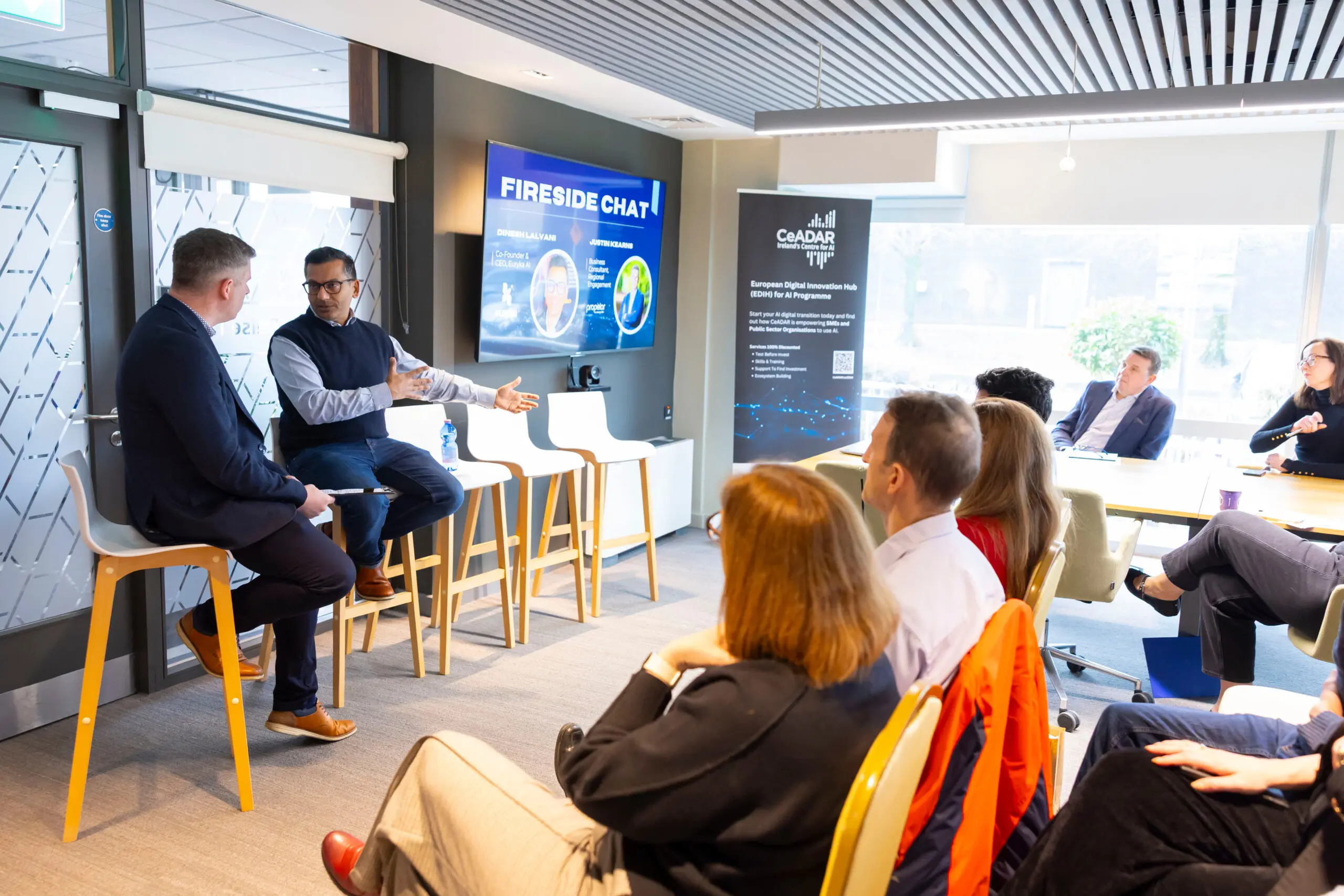 Speakers included Aidan Shine, CEO Propelor BIC, Laura Plunkett, Programme Manager of CeADAR’s European Digital Innovation Hub (EDIH) programme, Ramy Ebeid, EDIHCeADAR’s Digital & AI Engagement Lead, Jacqueline Kehoe of ENTIRE EDIH Ireland and Dinesh Lalvani co-founder of Euryka AI.