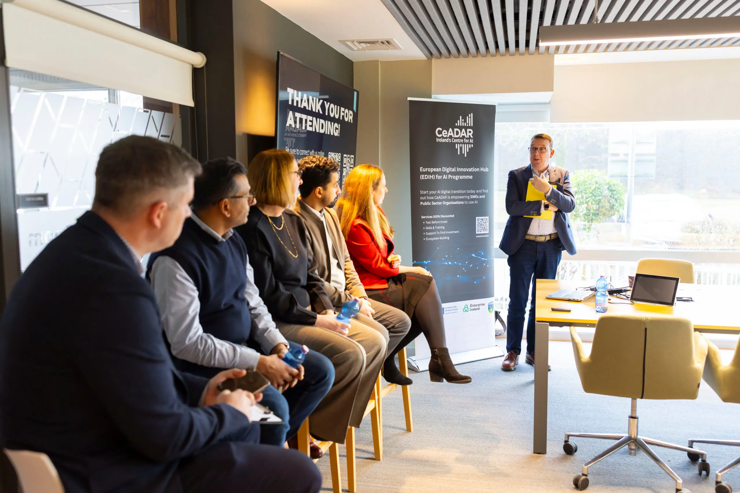 Aidan Shine, welcomed attendees and noted the value of partnering with CeADAR through the European Digital Innovation Hub programme to support founders in building AI-ready startups